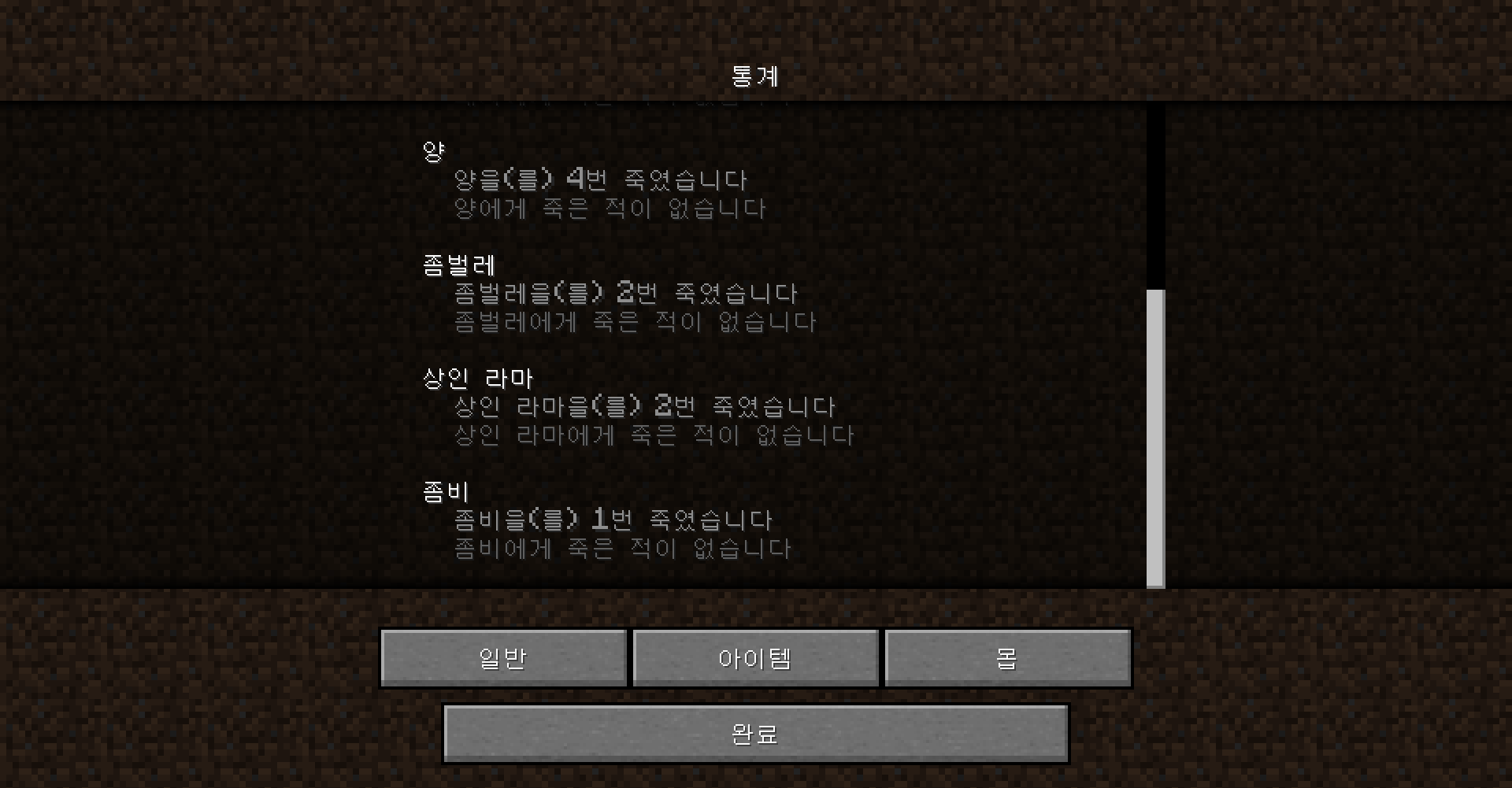 잡은 몹이 좀비 1번과 좀벌레 2번 뿐인데요...