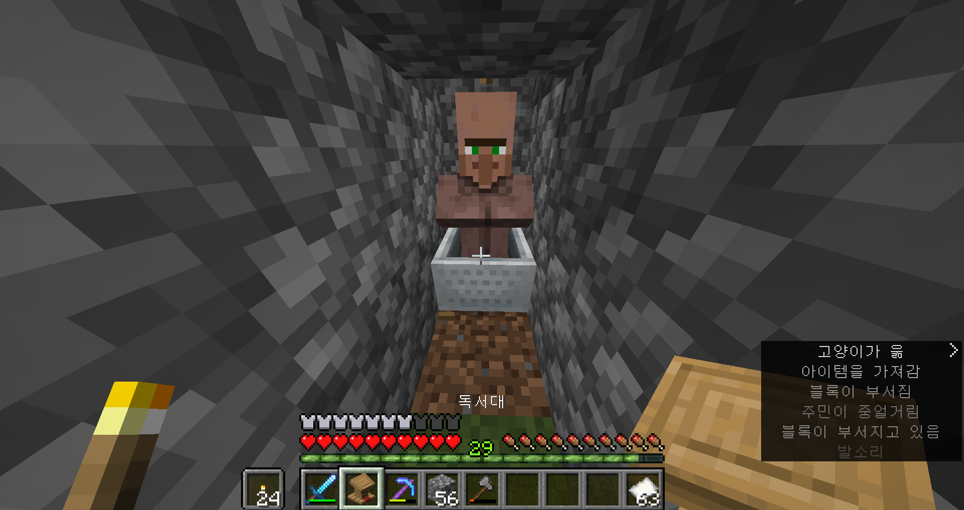 일단 직업블록으로 쓰이는 작업대들을 다 부서주고