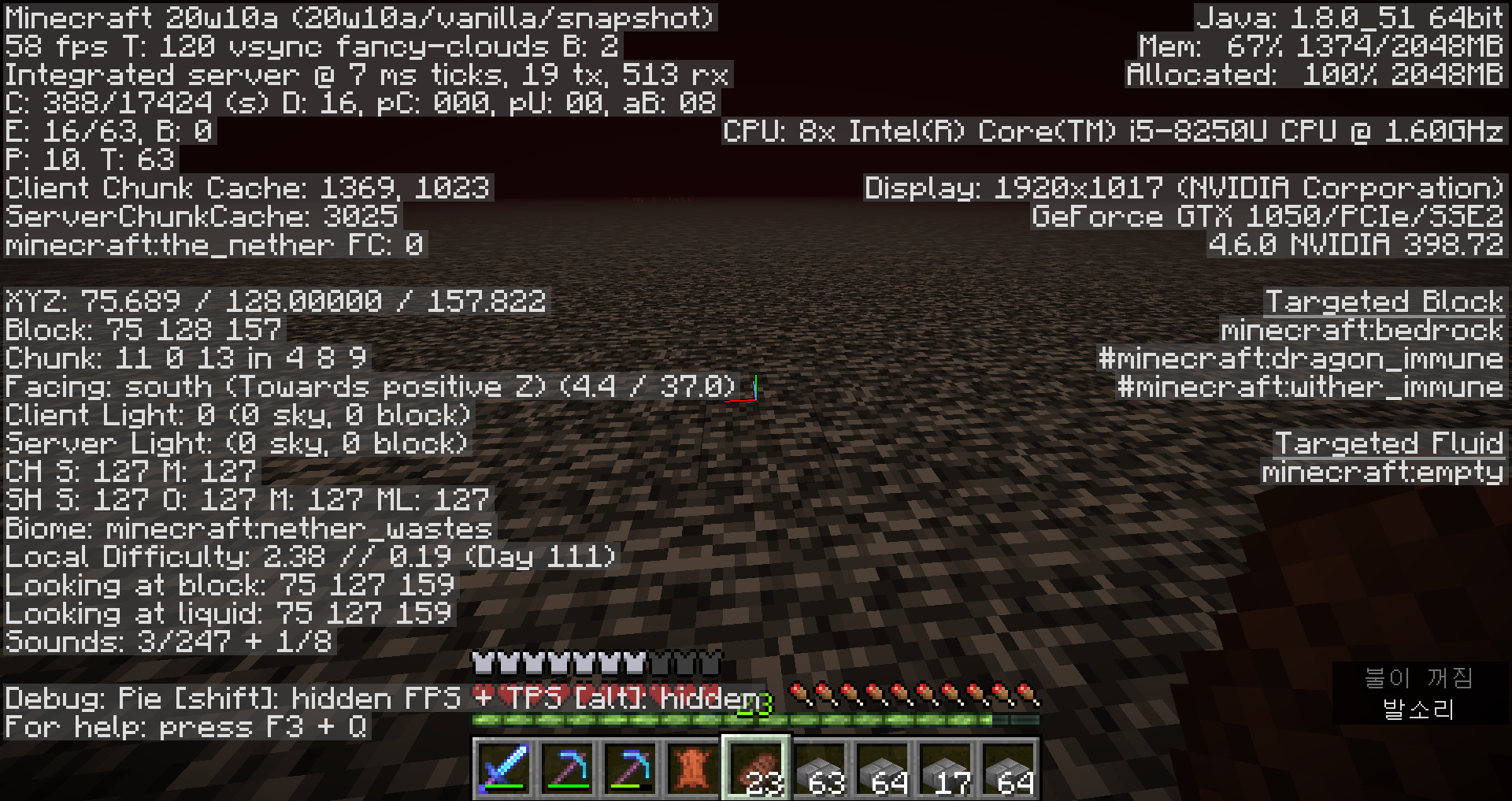 | 마인크래프트 야생생존기 #005.지옥천장 [1.16 20w10a] (2) | 2020.03.10 |
