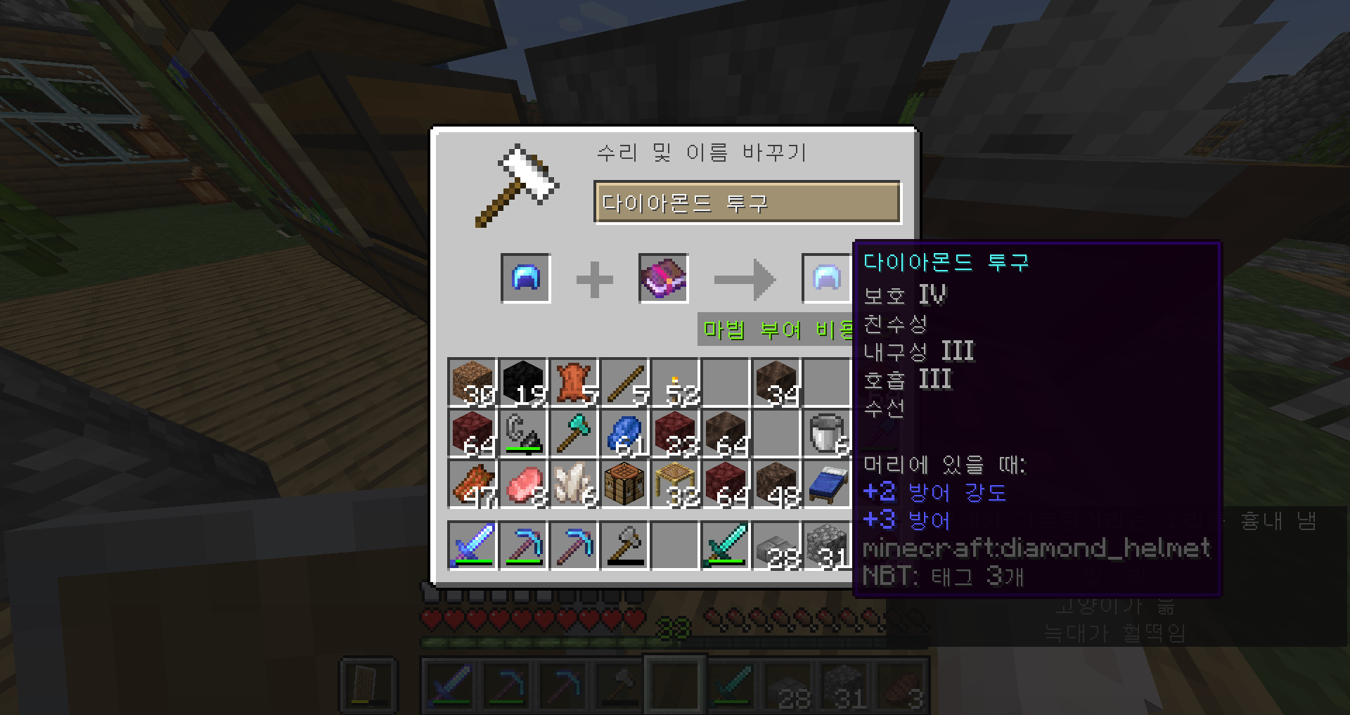좀비피글린 사냥해서 얻은 경험치로 투구 인챈트 !