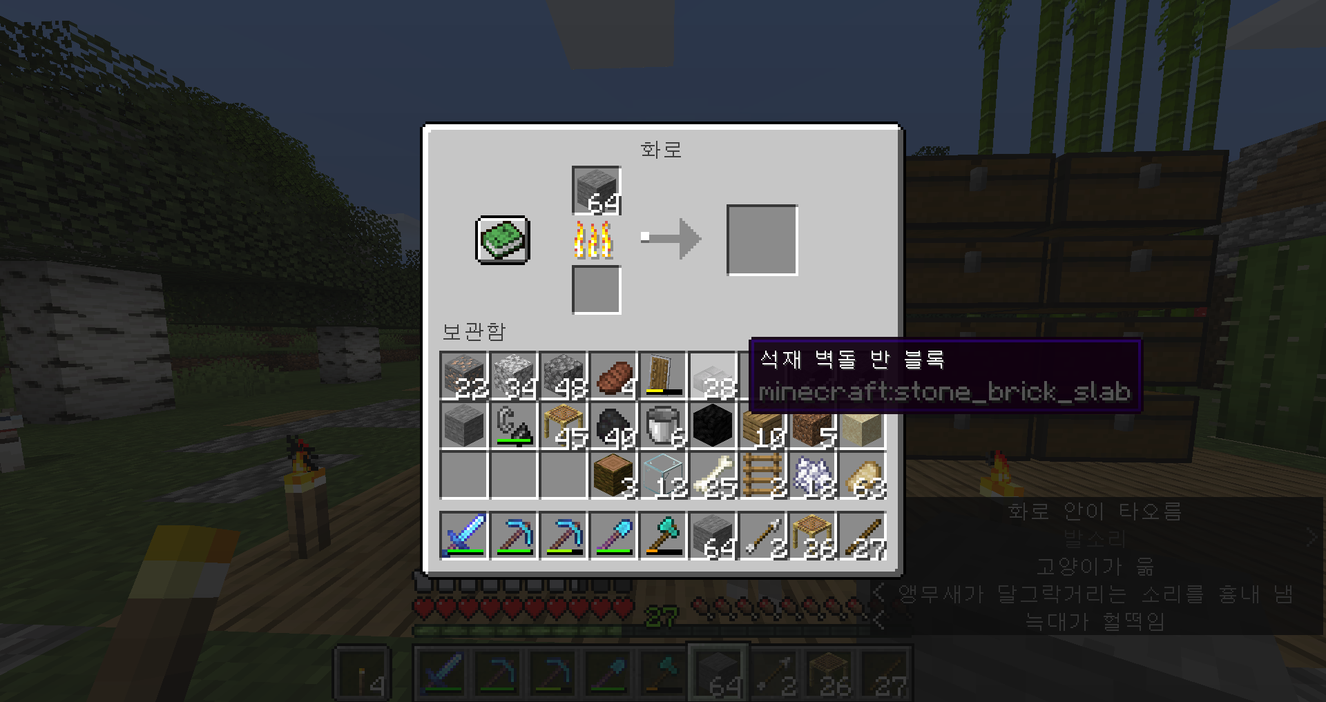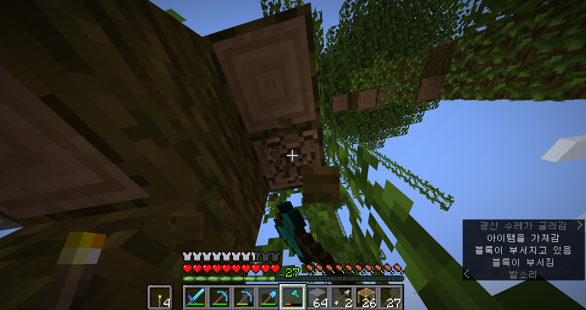 도끼 내구도가 아슬아슬해서 일단 작업 멈췄어요