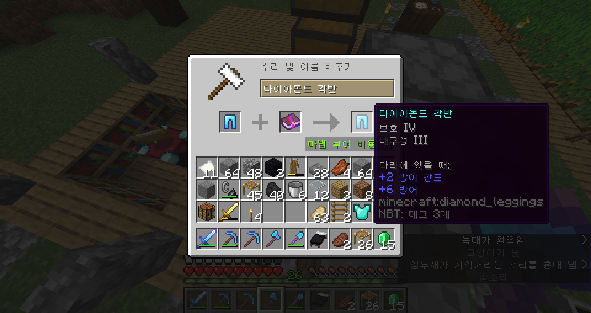낚시로 엮은 보호3 인챈트북으로 보호4 만들어줬습니다.