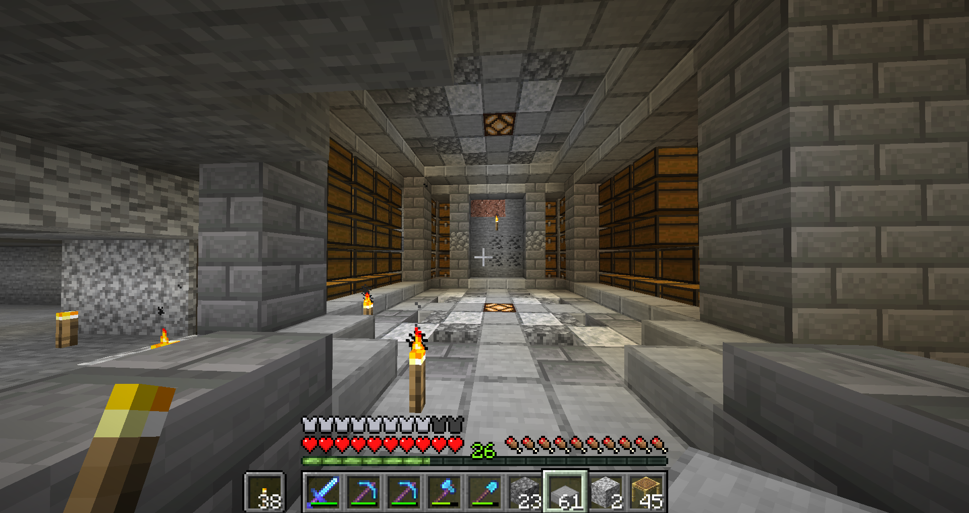 전부 아래반블록과 계단블록이라 몬스터가 스폰될 수가 없습니다.