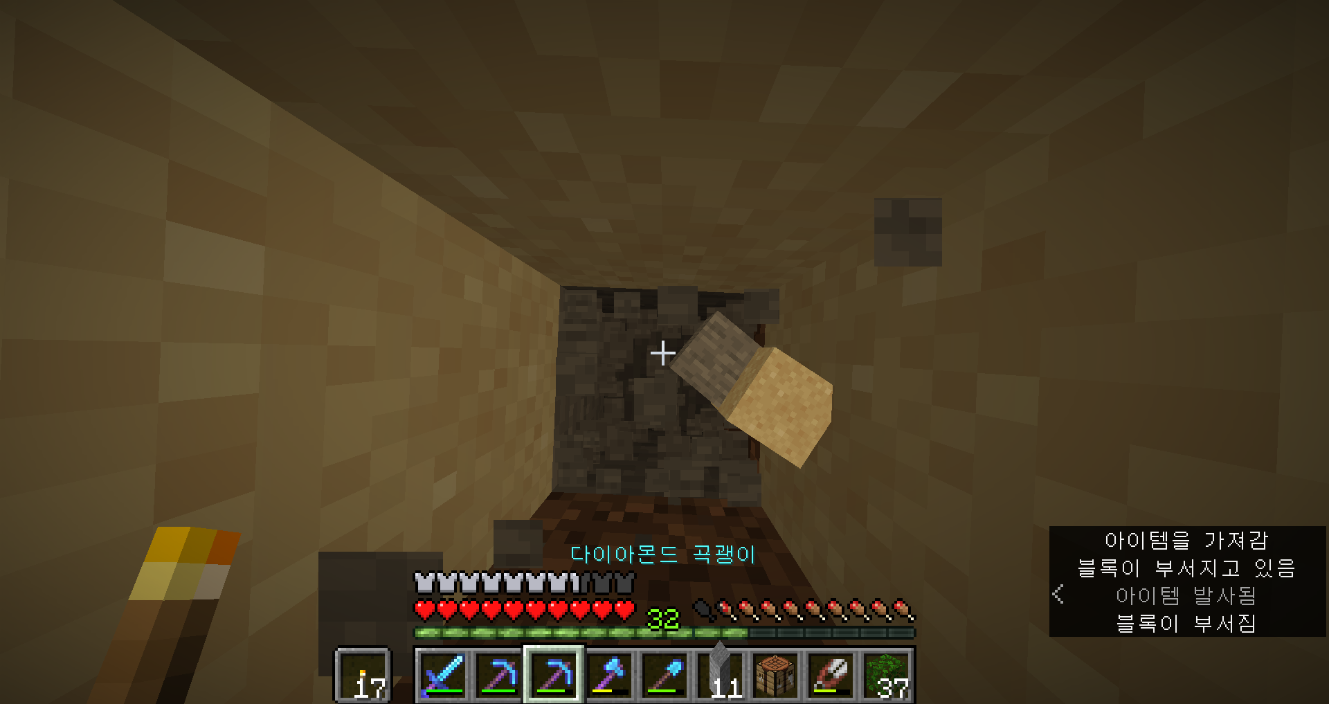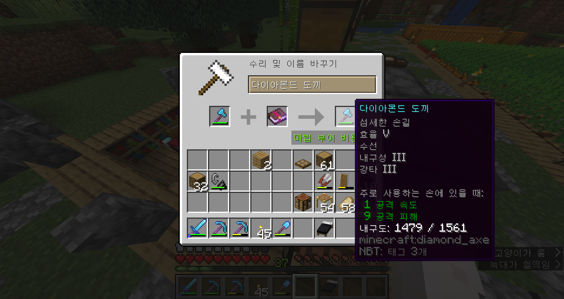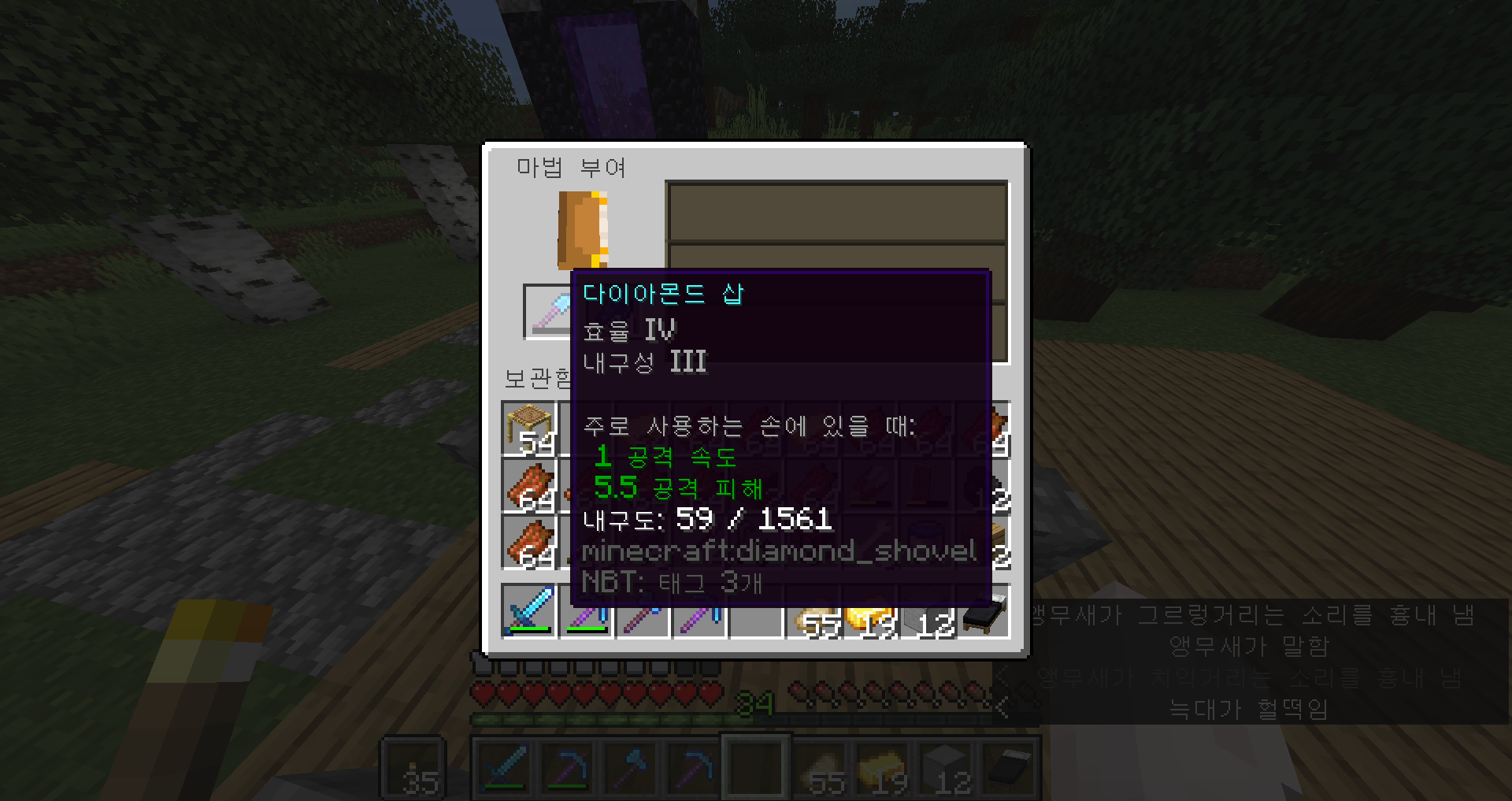 아, 진짜 안되겠다 일단 삽 인챈트를 하고 수리를 좀 해서 와야겠어요