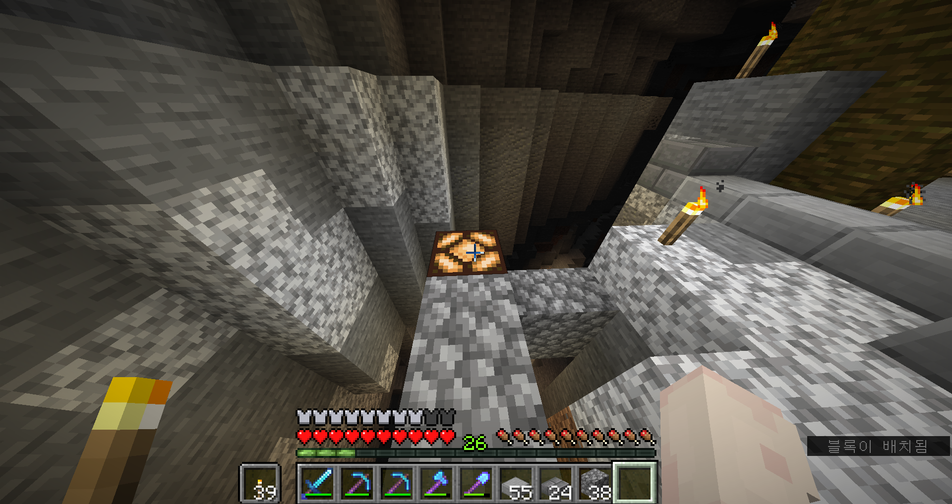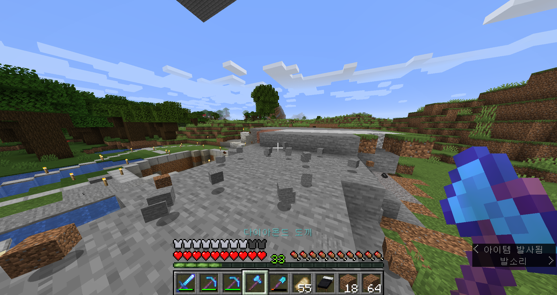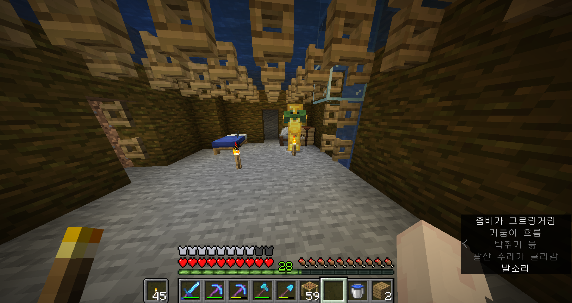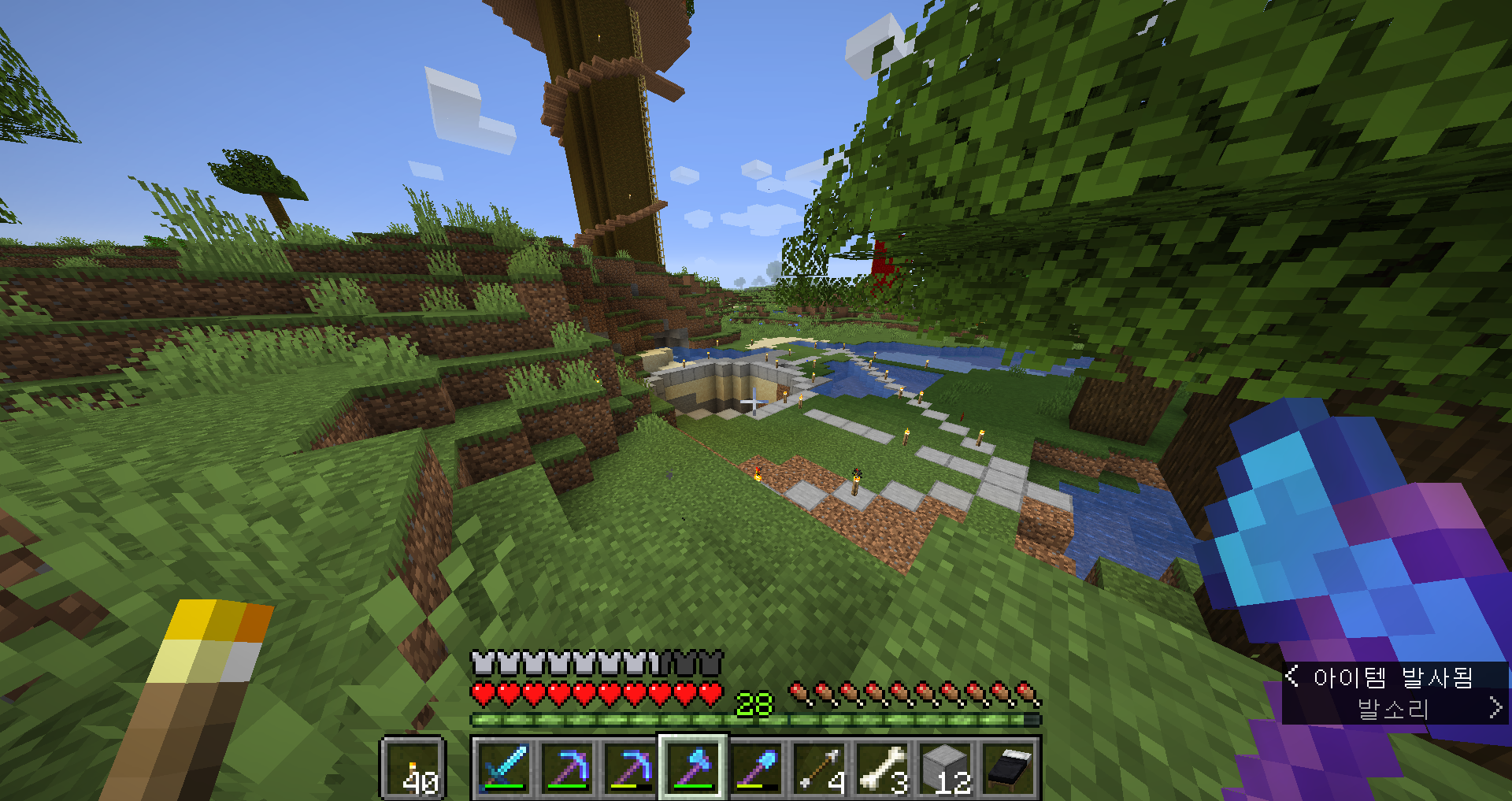 아, 진짜 안되겠다 일단 삽 인챈트를 하고 수리를 좀 해서 와야겠어요