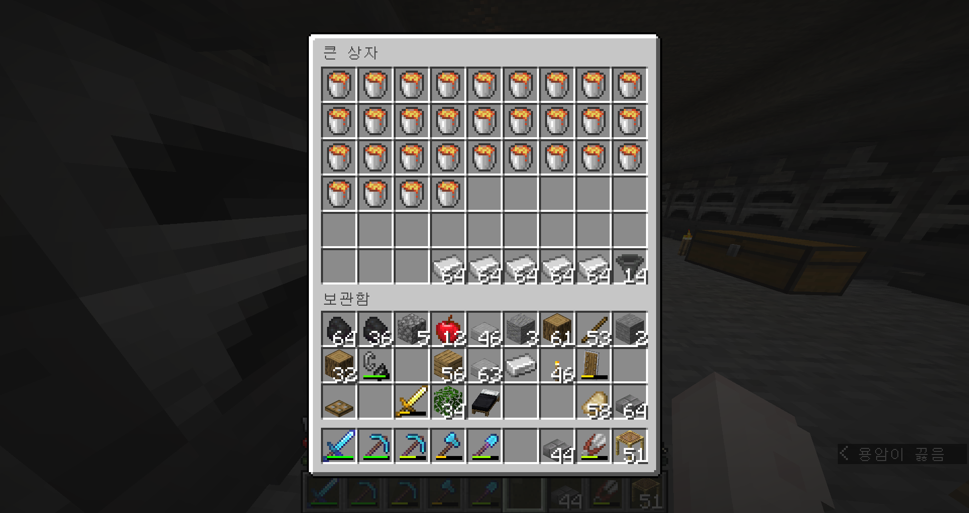 어차피 철도 많겠다 양동이 만들어서 용암을 퍼줍니다.