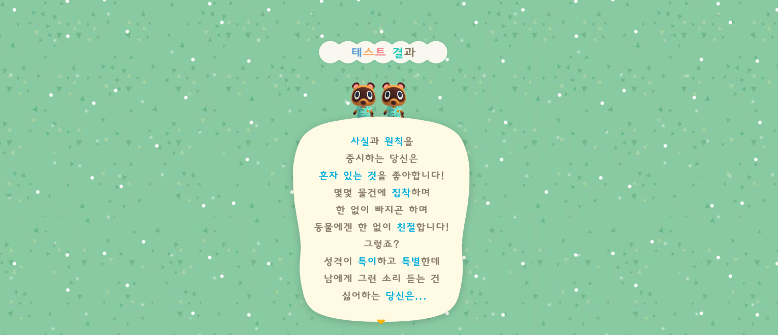 결과로 나온 주민이 마음에 드신다면 섬에 직접 주민으로 초대해보시는 것도 좋겠죠 ㅎㅎ ?