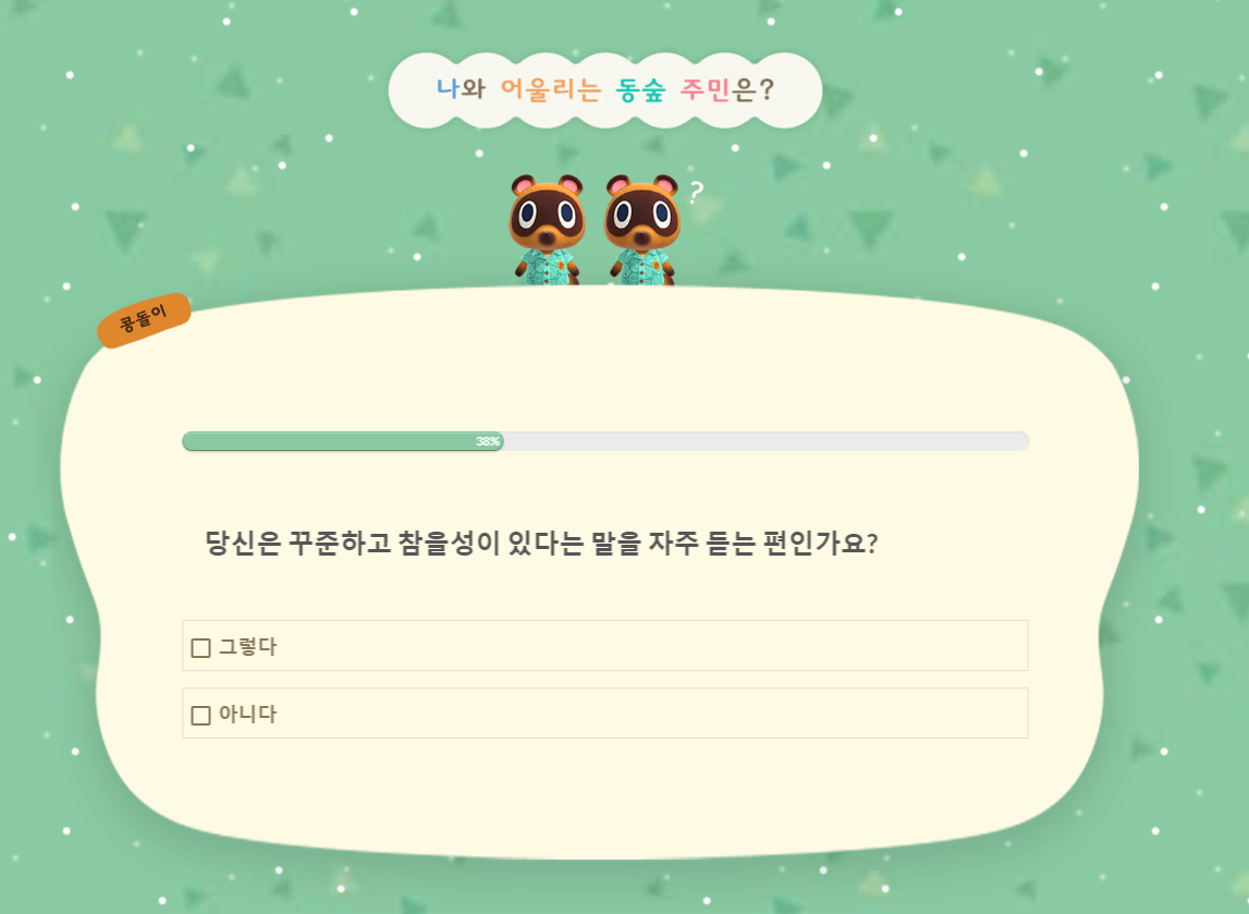 심리테스트를 통해 나와 잘 맞는 주민,운명의 짝궁을 찾아보는 거랍니다 ㅎㅎ