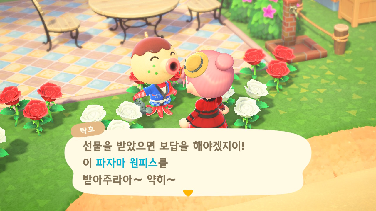개인적으로는 주민들에게 내 취향의 옷들을 선물하는걸 좋아하지만, 추후 나중에 분양보낼 생각이 있어서 순정상태를 유지하실 생각이라면 선물은 신중하게 하시는게 좋습니다 !