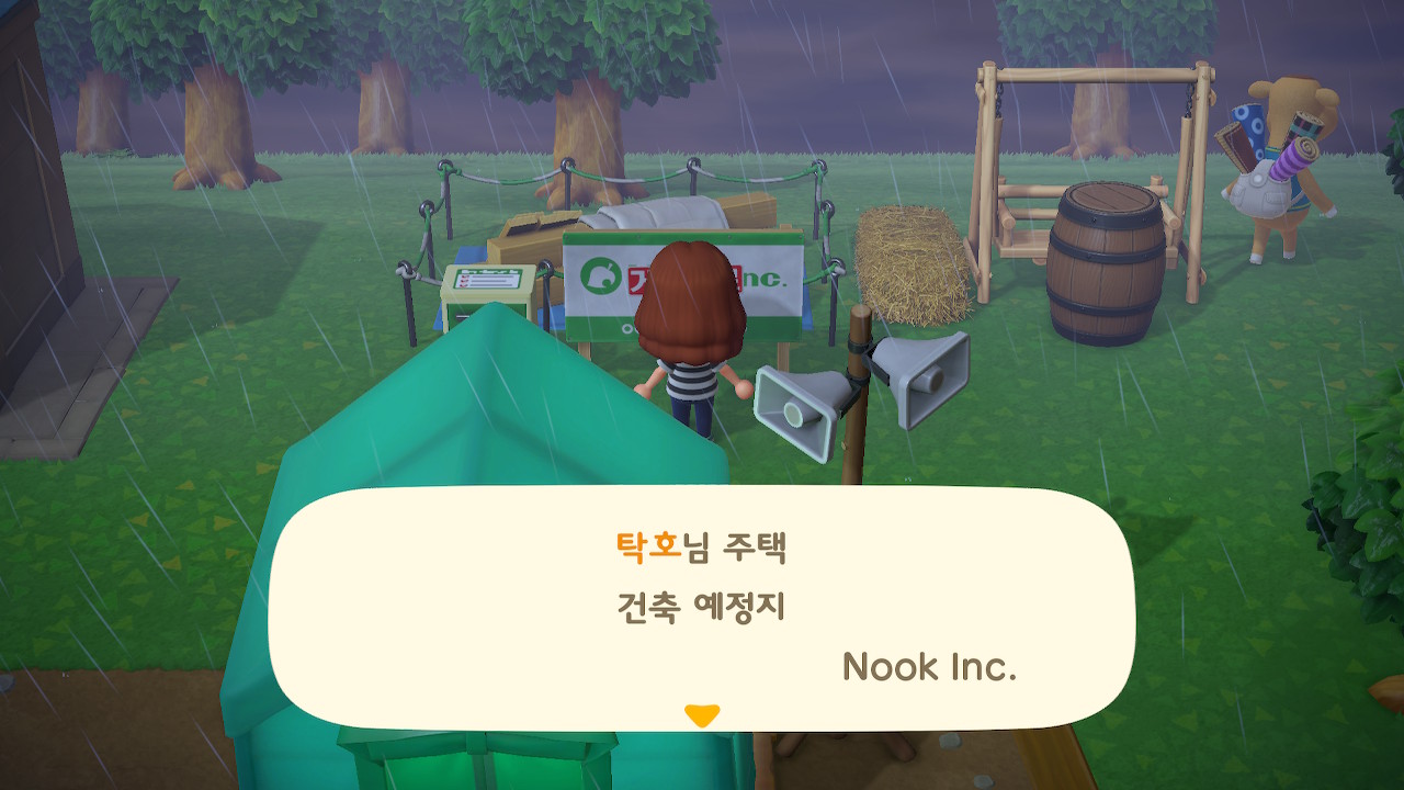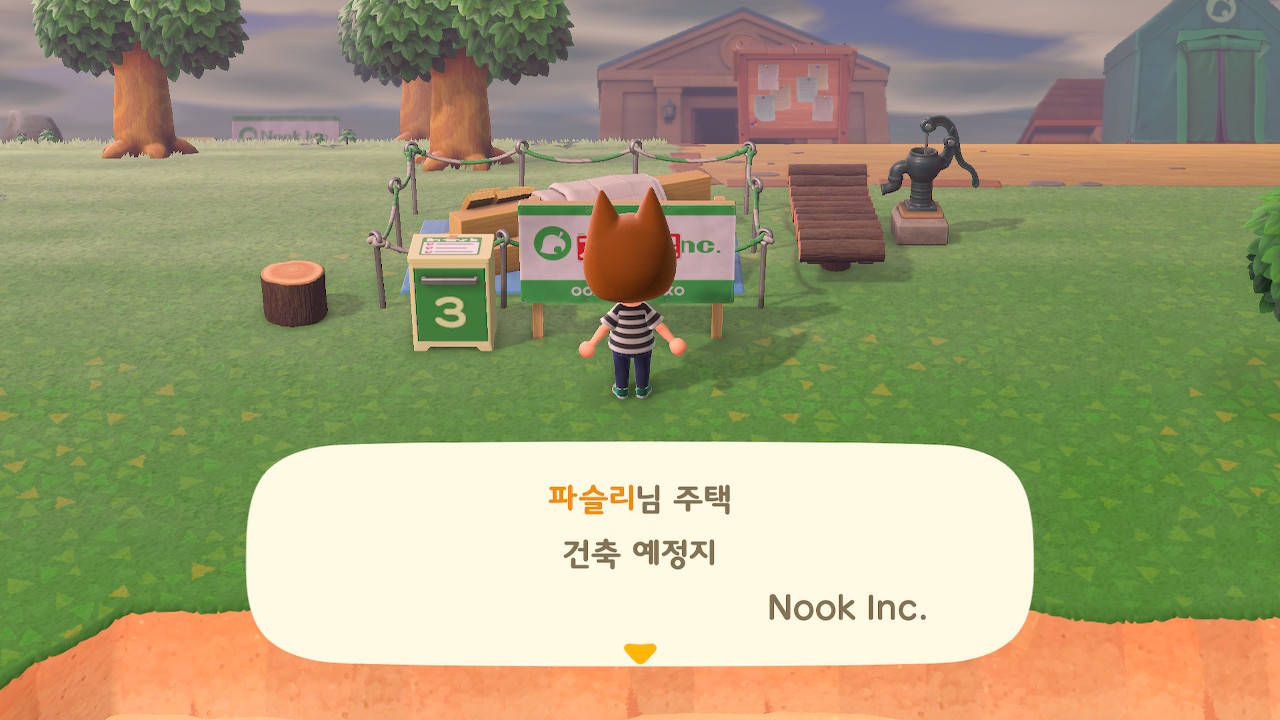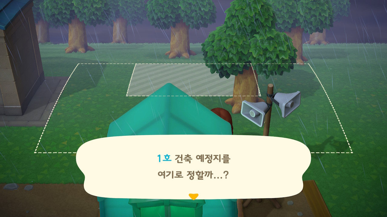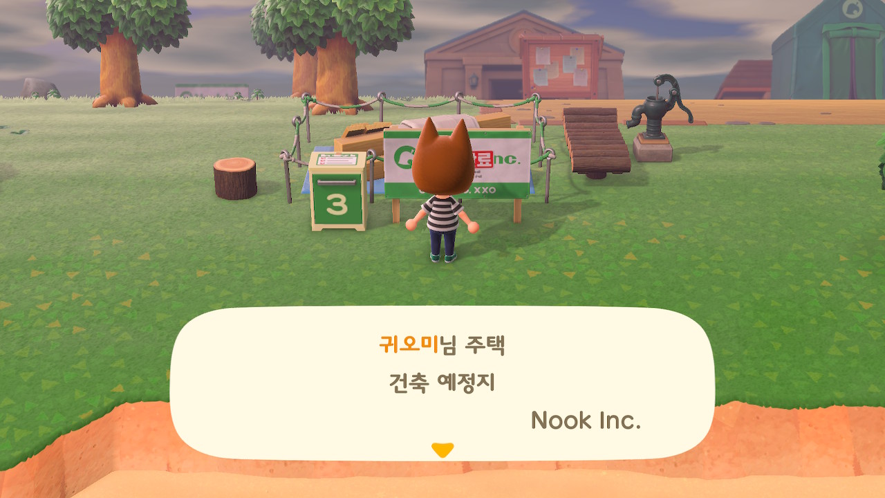 1호, 2호, 3호 하우징 키트를 받아서 건축 예정지를 정해줍니다. 이때 주의할 점은 안내소에 위치에 최대한 가까운 곳으로 건축예정지를 설치해주셔야 합니다. 이유는 아래에서 자세히 후술 할 테지만, 둥물의 숲 내에 자동저장이 3분에 한번씩 이루어지기 때문인데요. 원하는 주민이 아니면 자동저장이 되기 전에 홈버튼을 눌러 빠져나온 후 강제종료 후 재접속 하는 방법으로 이사오는 주민을 바꿀 거라서 최소 3분이내에 한번 왕복이 가능한 거리여야합니다.