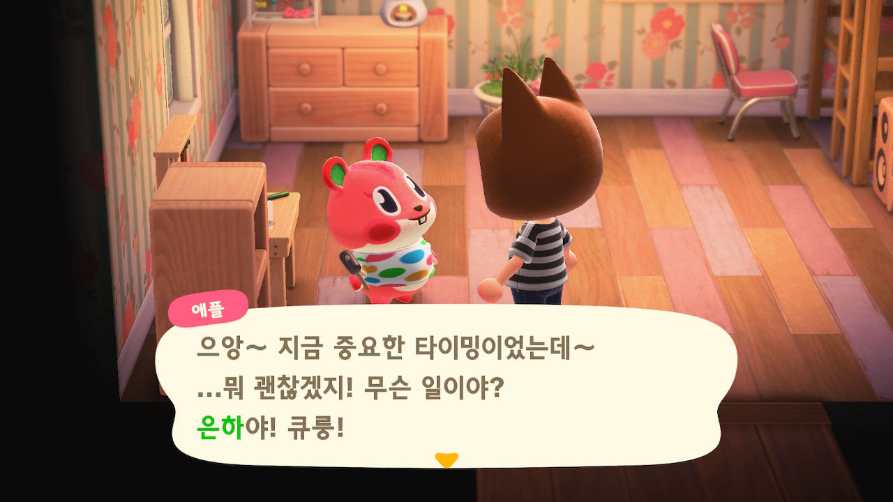 리셋하고 다시 게임을 시작할 때는 이 방법으로 원하는 주민 애플이를 데려왔습니다 ♥