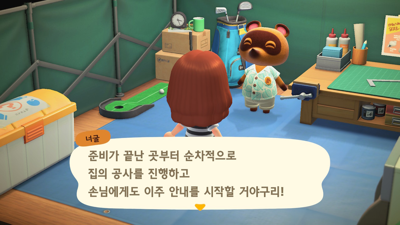 순서대로 진행할 필요는 없고, 가구가 갖추어지는 순서대로 진행하면 됩니다. 두번째 순서에서는 너굴이와 대화하는 과정이 없어 안내소 텐트에 들어갔다가 바로 나오기만 하시면 됩니다.