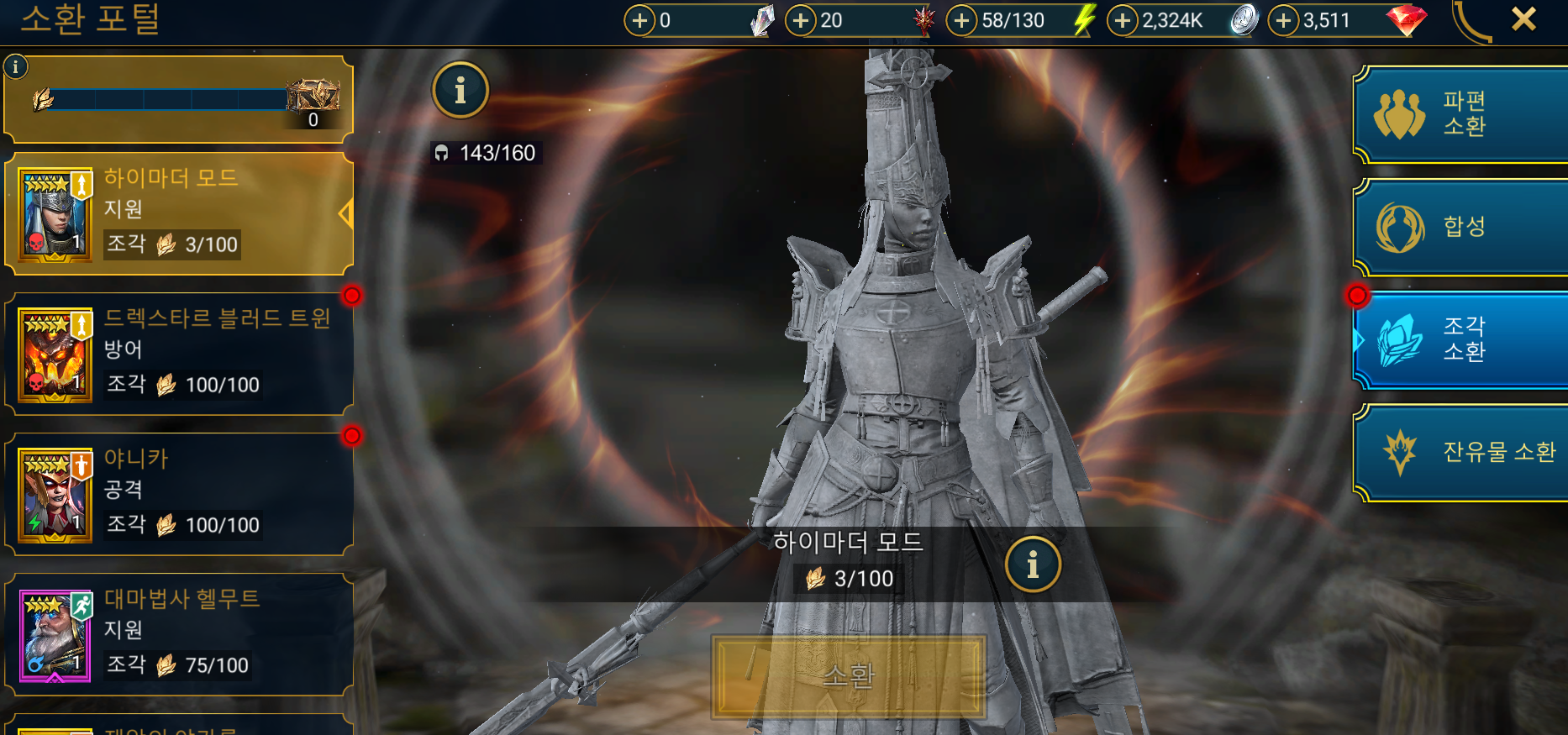이번 챔피언 체이스는 합성 재료인 에픽이 보이드라 이벤트 기간에 보이드 에픽 3마리 소환한 것, 리치 합성한 것, 안코라 소환한 것 등등 점수가 여유가 있어 이미 조각이 다 모인 야니카와 드렉스타르는 나중을 기약해 뽑지 않았다. 신비의 파편 600개를 까는 과정에서 드렉스타르를 뽑을지 정말 고민을 많이했지만...신비의 파편도 1200개 이상 보유중이었고 챔훈 기간이랑 겹쳐서 신비의 파편으로 챔체이스 점수를 채웠다.