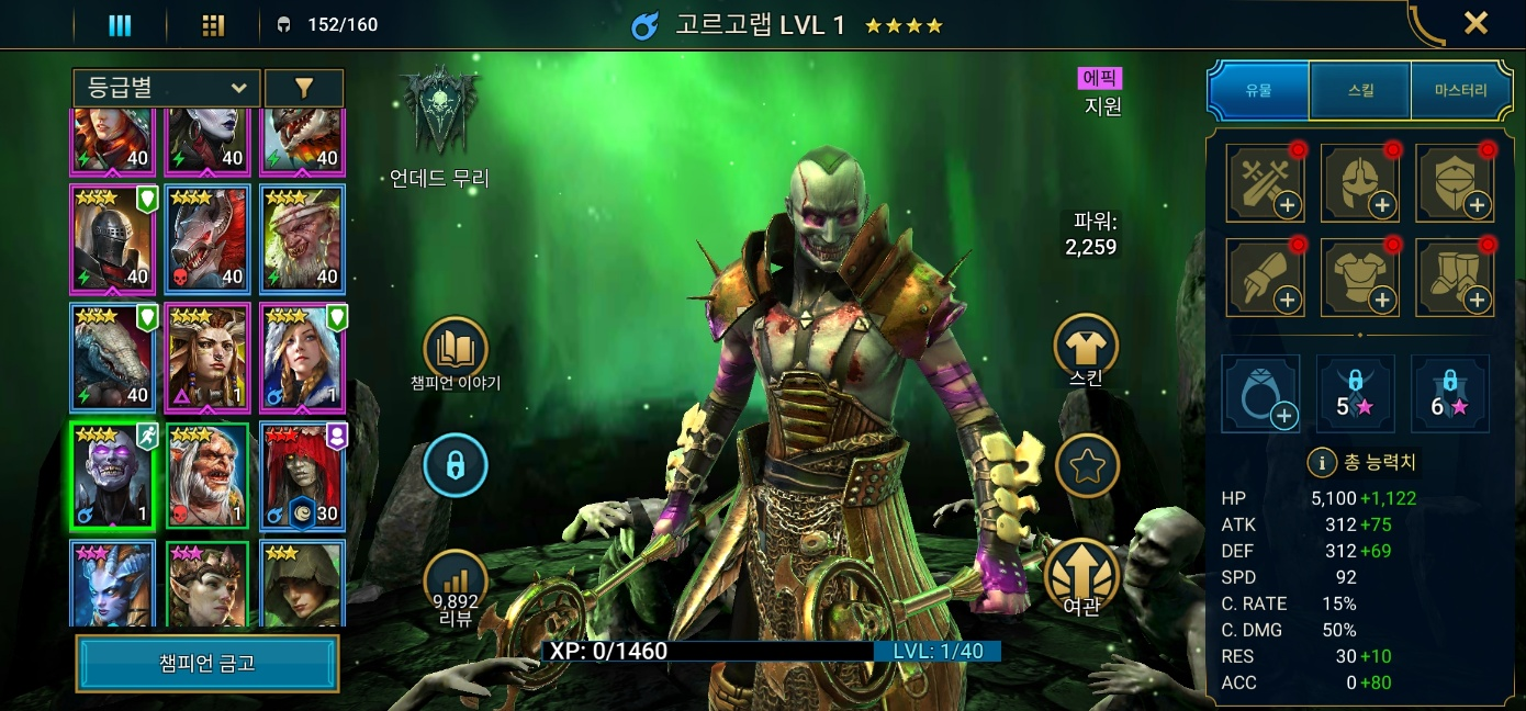 이번 소환러쉬 때는 전설은 못 얻었지만 확률업 에픽 라인업이 괜찮아서 3종 중에 이미 있는 교구장을 제외하고 신성한 파편에서 우우고, 고대의 파편에서 고르고랩을 얻는 수확이 있었다. 둘다 가지고 싶던 챔피언이었고 평가가 좋아서 천천히 키워서 써보려고 한다.