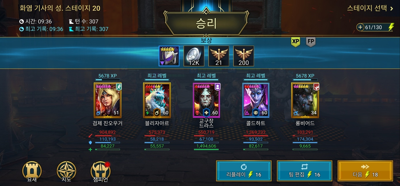 화염기사의 성은 가진 챔피언들이 화기 특화챔이 많아서 어렵지 않았다. 진오우거, 롱비어드 마작 끝내자마자 도전했는데 둘다 마작 안했어도 깨졌을 것 같다.