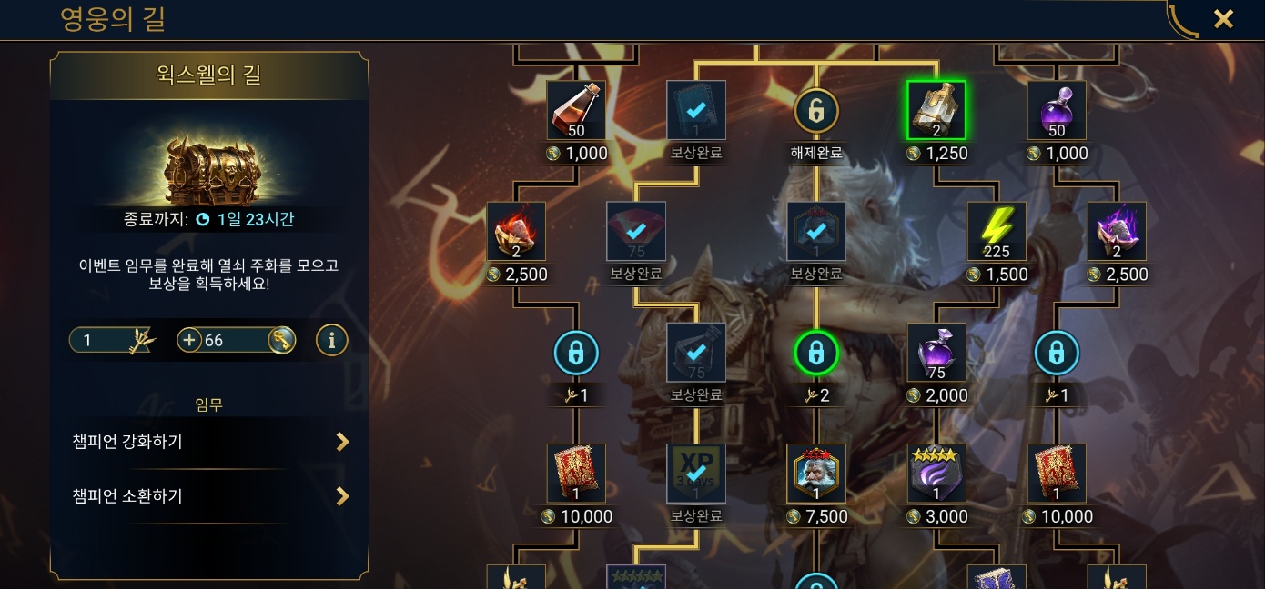 영웅의 길도 너무 무리하지 않는 선에서 진행해서 3각성까지 획득 완료.